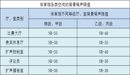 背景噪聲要求:體育館內比賽大廳和輔助用房的噪聲控制設計應從總體設計、平面布置以及建筑物的隔聲、吸聲、消聲、隔振等方面采取措施,背景噪聲不得超過相應的空間背景噪聲限值。