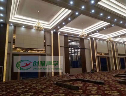 江西贛州酒店會議室(多功能廳)的墻面使用的是環保型軟包搭配防火型吸音板.