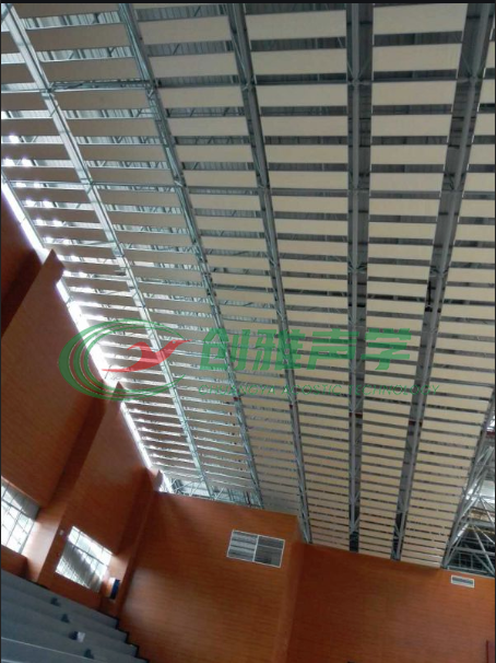 順著網架的形狀吊掛于棚頂。可以達到比較良好且較精確的吸聲效果。
