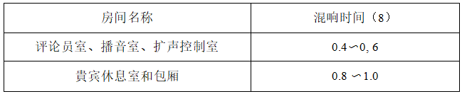 2.2.4體育場館內對聲學環境有較高要求的輔助房間的混響時 間宜符合表2. 2.4的規定.