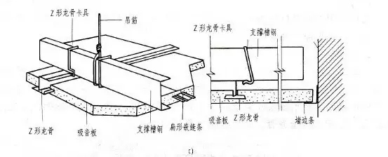 礦棉吸聲板懸吊式頂棚構(gòu)造示意圖-暗龍骨安裝