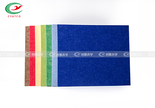 聚酯纖維吸音板的孔隙率達到90%以上,在中高頻范圍內具有良好的吸聲性能。且具有防火、吸聲、環保、裝飾、防水、易于安裝等特點。
