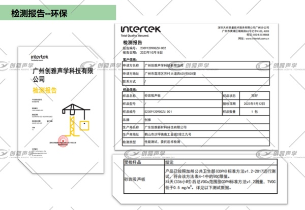 經官方機構檢測,微粒砂吸聲板的總揮發物(TVOC)0.096遠低于