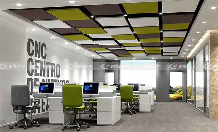 創雅聲學吸音板是由穿孔吸音板組成,穿孔率為30%以下,選用定制龍骨進行安裝,安裝便捷,施工簡單。而且它這種形式的復合吸聲體,吸聲頻率較寬(125-4000HZ),吸聲系數高(0.75-0.80)。