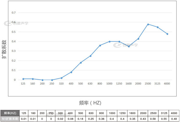 主要特點:N1擴散體可以將入射聲能分散開從而避免回聲和產生駐波。使聲場更加均勻,改善聲環境,提高聲音的明亮度。擴散頻率范圍(500Hz-2000Hz)。